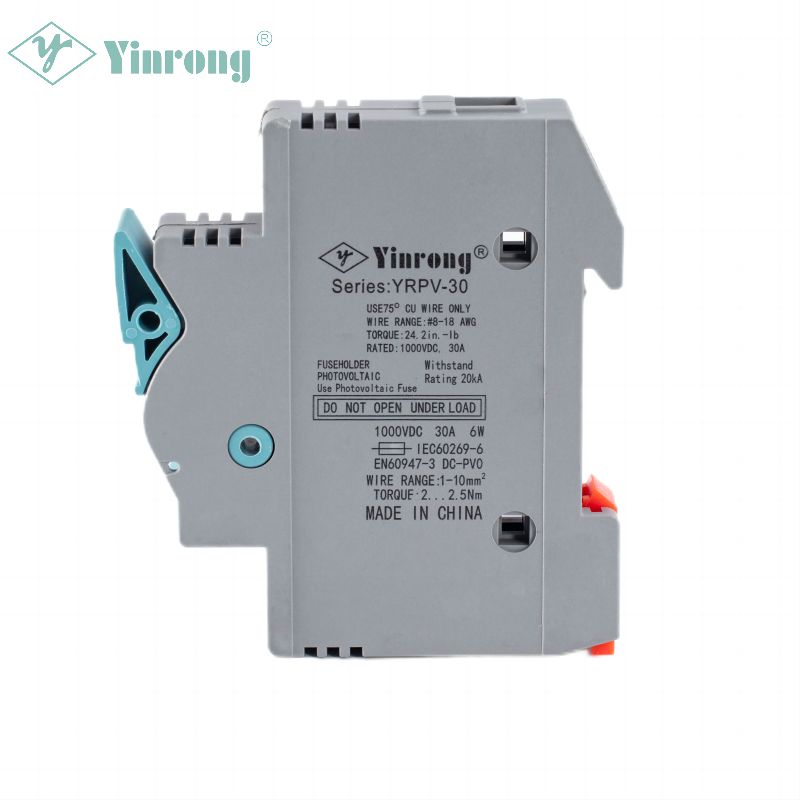 Uchwyt bezpiecznika PV YRPV-30 1000 V DC 10 × 38 mm z wysokością został zaprojektowany tak, aby pasował do bezpiecznika PV 1000 V DC, który może zapewnić szybko działającą ochronę w warunkach przeciążenia prądowego związanych z systemami fotowoltaicznymi (PV). Całkowita wysokość produktu została zwiększona z oryginalnych 61,5 ± 0,5 mm do 70 ± 0,5 mm, co pozwala lepiej dopasować pasujące wyłączniki automatyczne i zabezpieczenia przeciwprzepięciowe oraz ujednolicić wysokość wszystkich akcesoriów w skrzynce połączeniowej i innym sprzęcie w celu uzyskania płaszczyzna pozioma, nie tylko zwiększa bezpieczeństwo użytkowania i poprawia estetykę. YRPV-30 1000VDC 10×38mm podwyższony uchwyt bezpiecznika fotowoltaicznego jest również dostępny w konfiguracjach 1, 2, 3 i 4-biegunowych.